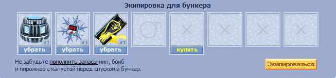 Для ведения боевых действий в бункере доступно 4 слота + 1 дополнительный, который можно купить на 2 недели.
